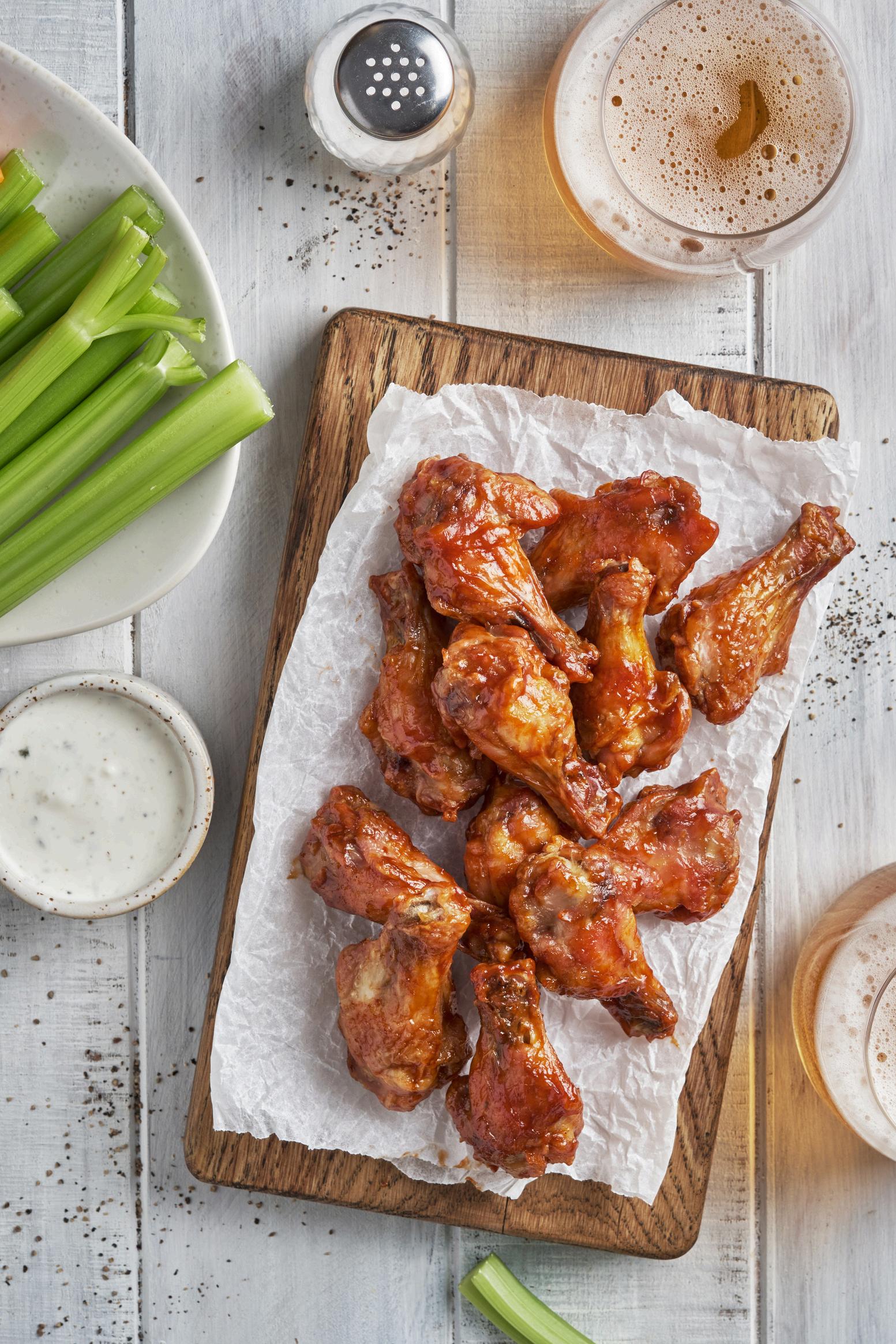 Toss & Serve: Coat wings in sauce. Serve with celery and blue cheese or ranch.