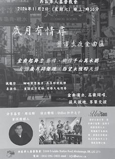 輕歌妙韻集逍遙 「輕歌妙韻集逍遙」(每月最後的星期五晚上七點半 至九點十五分)- 好歌齊唱,以金曲飲歌會友,分享人生 點滴。月前更與盛名福音樂隊協辦晚會,廣邀社區好友到 來分享信息,見證我們的信仰和上帝的奇妙作為。
