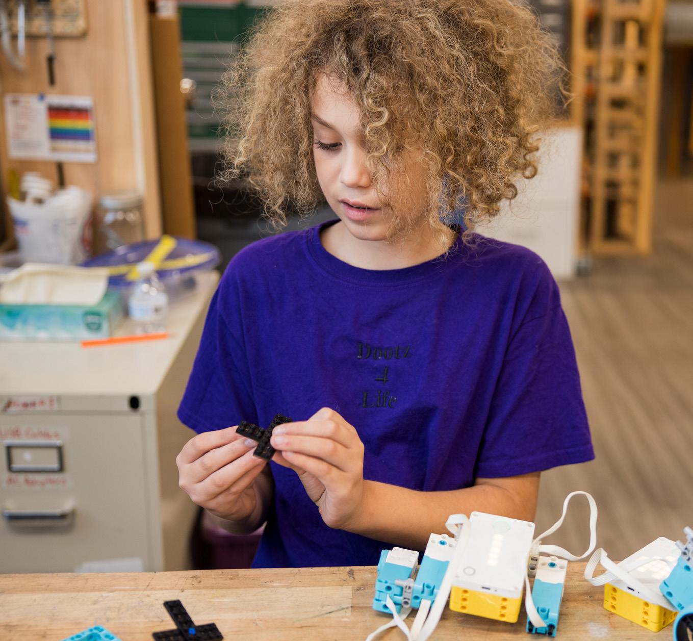 “I love the engineering here! I’ve been able to design, build, and even create a habitat for fish and other aquatic creatures. I’ve learned to collaborate with other kids on projects, and I get to work in big groups, small groups, with a partner, and by myself when it’s the right time. The teachers are so helpful; I can always ask questions, and they help me find the answers.”