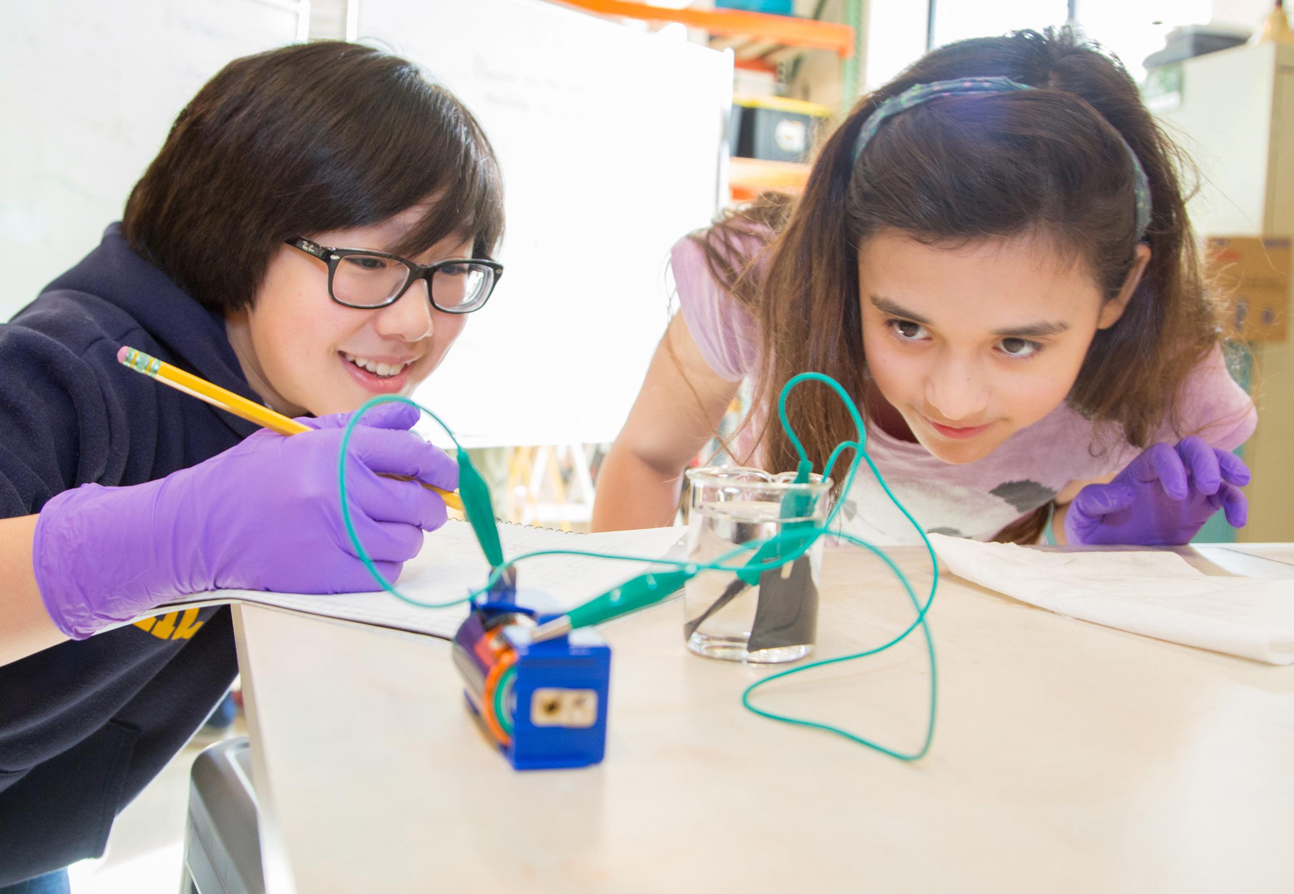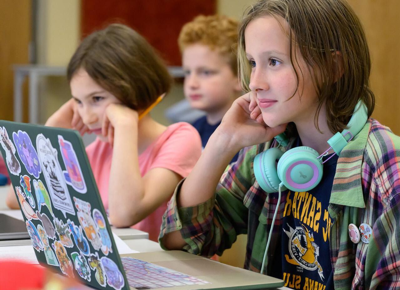 Classroom experiences and projects showcase and expand students’ learning across both core and specialty academic areas, taught by specialists with deep expertise and training in these fields. In the lower school (kindergarten - grade 5), specialist topics relate to core classroom themes for the year (visual and performing arts, lab sciences, engineering, computer science, applied technology and microcontrollers, physics, wood shop, maker space, fiber arts, and electronic arts). In upper school (grades 6-9), specialists design and lead elective offerings across myriad subjects on a trimester basis.