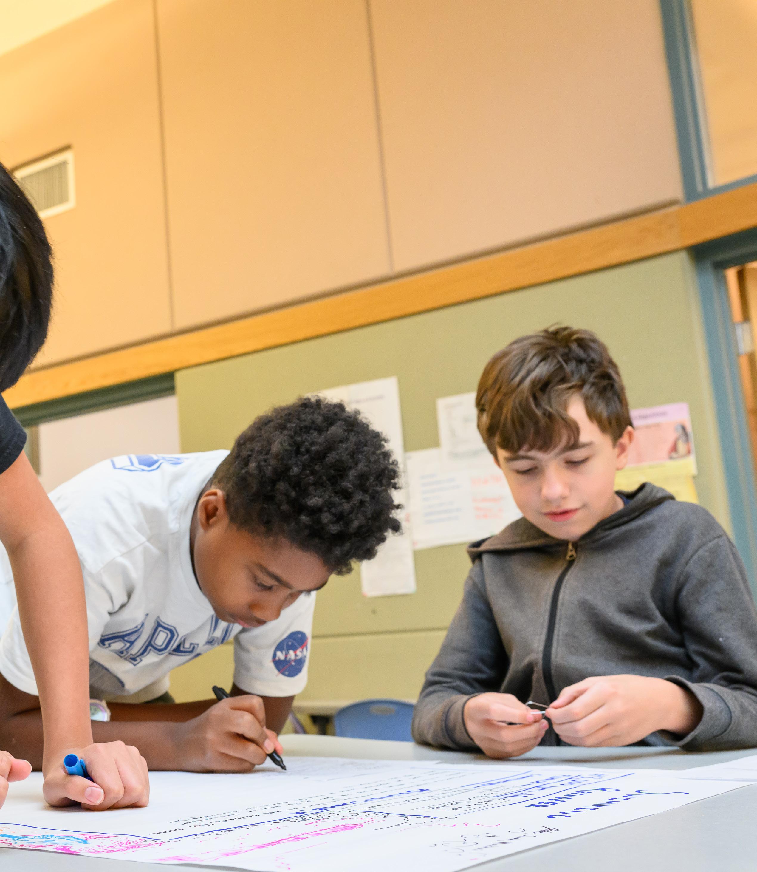 Students in grades 6–9 have the opportunity to select from dozens of highengagement electives across sciences, engineering, social sciences, and humanities. These courses are developed and refined by our intellectually charged and creative educators who align the curriculum to students’ interests and strengths, as well as to current events and innovations. By incorporating primary source material and focusing on real-world applications, these elective courses emphasize the development of core capacities and academic skills while maintaining high school-level content and rigor.