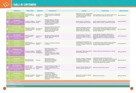 Aquí se presentarán ideas o sugerencias para introducir la temática del capítulo. Serán los disparadores que tendrán el propósito de incentivar al niño para el trabajo. Las dos primeras páginas de cada capítulo inician con estas propuestas. Allí encontrará preguntas que servirán para despertar la curiosidad y motivar los aprendizajes. Es ideal que incluya juegos, experimentos, paseos; es decir, alguna experiencia directa que intrigue, entusiasme y “enganche” al niño con el deseo de hacer. Es bueno que, mediante estas actividades, el estudiante entienda qué es lo que se va hacer y para qué; es una síntesis de la tarea.