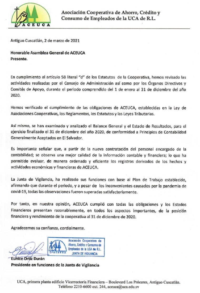INFORME DE LABORES DE LA JUNTA DE VIGILANCIA AÑO 2020
