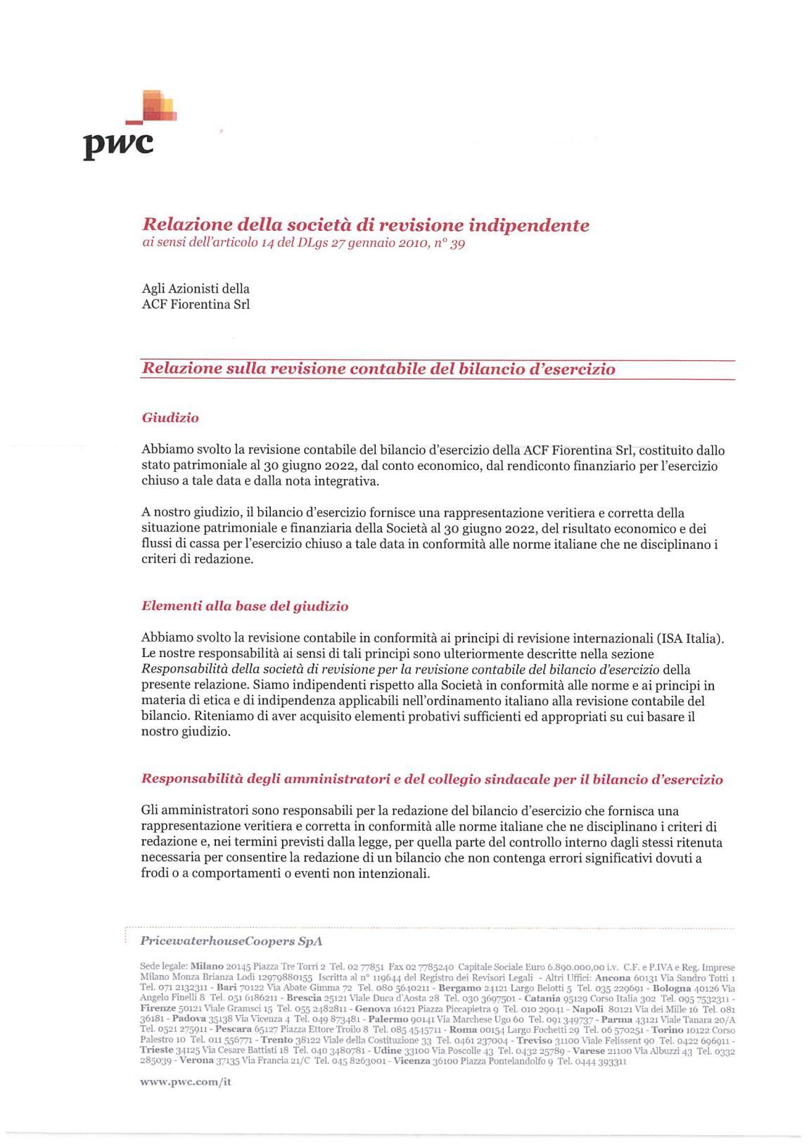 ACF FIORENTINA S.r.l. BILANCIO 2021/22 RELAZIONE FINANZIARIA ANNUALE