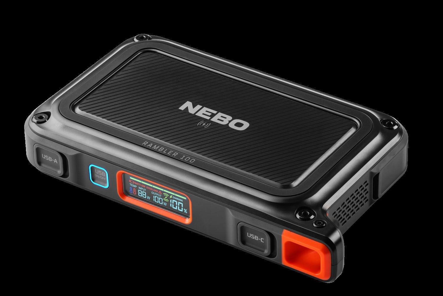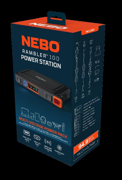 The Rambler 100 is a hand-held, portable power station that is ready to go wherever you may roam with USB and wireless charging capabilities. Built with a rugged, impactresistant body that is stylish enough to be a companion to power your laptop or smartphone at the coffee shop and durable enough to keep up with demands of the trail and campsite to power your lantern, headlamp, flashlight, or drone. With 96.2 watt-hours of power, it packs a lot into a compact design that also meets the guidelines for a carry-on approved item so you can stay powered up at the terminal and 30,000 feet.