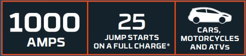 • Designed for 12V car, motorcycle, & ATV batteries (Rated for gasoline engines up to 4 liters)