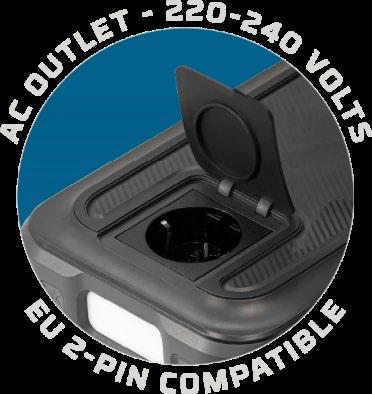 The NEBO ULTIMATE boasts a robust 220-240 volts AC mains outlet, delivering power to your essential devices wherever you may find yourself.
