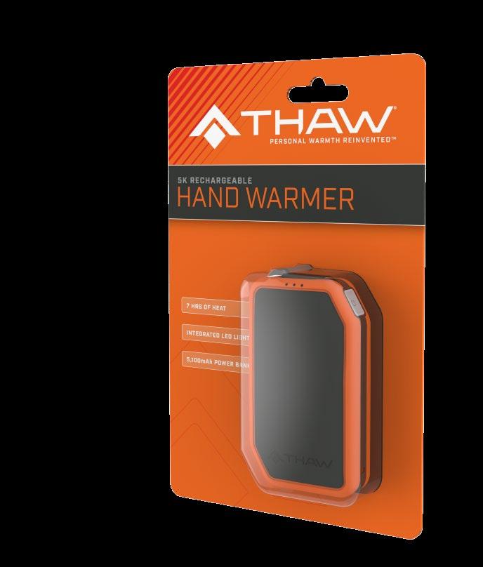 Two Rechargeable Hand Warmers give your fingers much needed relief and easily fit in your pocket, so they’re always with you . Beat the pain of chilled joints with double - sided heating and simple onebutton controls. Heats up to 113 ºF and lasts up to 4 hours Each hand warmer also features an integrated LED light so you can illuminate your task without freezing your fingers .