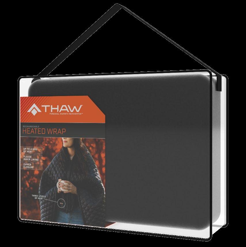 Bundle up with the stylishly warm Rechargeable Heated Wrap . This ultra - soft wrap provides up to 4 hours of wearable warmth . The zipper closure allows the wrap to be worn or open it up and share the warmth with a friend . Either way, snuggle up and enjoy the comfortable, relaxing warmth .