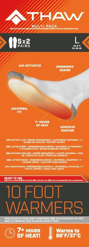 Don’t “Bundle Up” “Bundle Off” with our disposable toe warmers . When opened, air reacts to the ingredients inside the pouch to create a safe and long- lasting heat so you can get on with your outdoor activities Use them all day then dispose of them easily . Don’t let cold stand in your way .