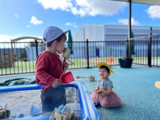ACG Sunderland 09 838 7070 6 Waipareira Ave, Henderson, Auckland 3 Early Learning School Under 2’s Room Junior Room 第四学期,我们ACG桑德兰的早教学校的幼儿班将专注于孩子们的身体发育。我们课程 的大部分将以发展和提升孩子们的大运动和精细运动技能为中心。孩子们总体发展至 关重要的技能是通过精心策划的小组互动来关注这种学习和发展。 通 过这些大运动的训练,孩子们将获得对 自己身体和能力的控制和认知。他们获得 了信心和自尊,这将支持他们在其他领域 的学 习,包括社交能力。随着孩子们开始 意 识到自己的身体,他们开始学会如何控 制自己的身体,这鼓励了在垫上学习和互 动所需的注意力。 夏天快到了,我们戴上帽子,晒晒太阳。