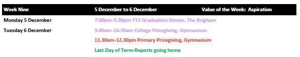 ACG Sunderland 09 838 7070 6 Waipareira Ave, Henderson, Auckland 2 Aspire. Succeed. Respect. Nathan Villars Campus Principal ACG Sunderland Value for next week is: Graciousness The quality of being kind, polite and generous. 祝各位周末愉快。 我想借此机会感谢所有参加这一重要活动的教职员工,特别是感谢Keen先生对中学 部 这次活动的全面领导。 由于我们两位老师都在休产假,Chartrand女士今年领导了六年级的露营活动 特别 感 谢Trew女士和Hasan女士也参加了这次在Far North的露 营活动。 星期二,我们一年级的孩子们参观了Royal Heights养老院,在过去的15年里,在 Covid之前,我们一直有参加这种活动。Bulter夫人反馈非常好 我们的孩子们为居 民 们唱起了圣诞颂歌。 我看到我们从养老院回来时也带来了几十个气球。 另外,周二,消防队参观了我们1 2年级的班级,Bulter夫人的反馈也是非常积极的。 希望这个春天的小风暴能在周末消停,我们能一切准备就绪迎接颁奖典礼并在圣诞 节来临之前享受一些家庭时光。