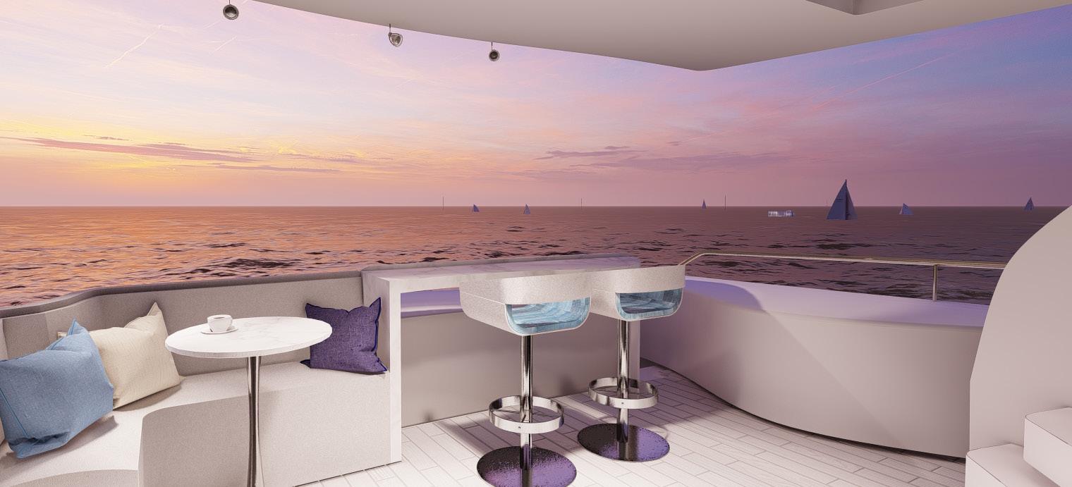 Yacht Design - Miami, FL - March Collaboration Project with two classmates, Work directly with client to design Developing 3D Model of Exterior Interior Costome Furniture using Rhino and Performing Render of Exterior Interior, and Landscape Environment using
