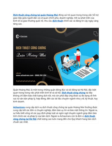 Dịch thuật công chứng tại quận Hoàng Mai by Á Châu Công ty dịch thuật - Issuu