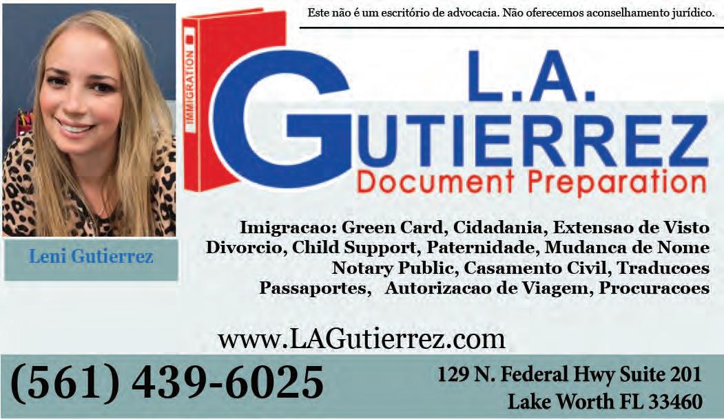 INGLÊS GRÁTIS – CONVERSAÇÃO E GRAMÁTICA - As aulas são oferecidas gratuitamente em nossa igreja - Terças e Quintas - 7:30pm às 8:30pm - Todos são bem-vindos!Mais informações: TEL: (954) 234-9796 Claudio McCandless. PROBLEMAS COM PESTES E INSETOS? - Entre em contato hoje ainda! Animais selvagens, roedores (ratos, etc.), baratas, formigas, aranhas, parasitas, plantas, cuidamos de todos! Serviço profissional e eficiente. Ligue ou mande um texto agora! standardpestfl@gmail.com TEL: (561) 451-5205 Filippe Anderson Chagas.