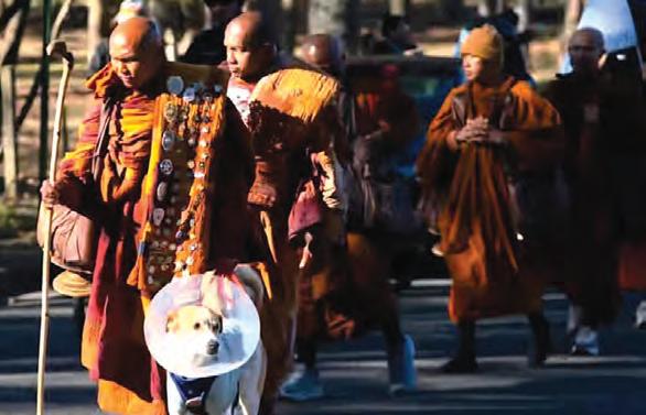 Uma caminhada espiritual iniciada há mais de 80 dias por monges budistas voltou a chamar a atenção da mídia e do público nos EUA. A peregrinação começou em 26 de outubro de 2025 no Texas, com o objetivo de percorrer 2.300 milhas (3.700 km) a pé até Washington, D.C., espalhando mensagens de paz, compaixão e união. A chegada do grupo está prevista em meados de fevereiro.