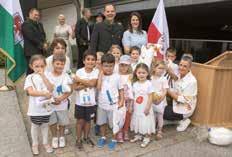 Der Kindergarten Wiesing feiert dieses Jahr sein 50-jähriges Bestehen. Das war ein guter Grund, alle Wiesingerinnen und Wiesinger zu einem gemeinsamen Fest einzuladen. Am 30. Juni 2024 fanden die Feierlichkeiten statt. Nach der Hl. Messe mit Pfarrer Stefan Hauser in der Pfarrkirche Wiesing, welche von den Kindergartenkindern mitgestaltet wurde, erfolgte der gemeinsame Umzug mit den Traditionsvereinen Richtung Kindergarten. Danach standen die Festansprachen von Landesrätin Astrid Mair und Bgm. Stefan Schiestl auf dem Programm. Musikalisch umrahmt wurde die Feier durch die Musikkapelle Wiesing und die Kindergartenkinder. Im Anschluss lud die Gemeinde zum Tag der Offenen Tür mit gemeinsamem Essen und gemütlichem Beisammensein ein. Es gab Spielmöglichkeiten für die Kleinen, auch die Räumlichkeiten des Kindergartens konnten besichtigt werden.