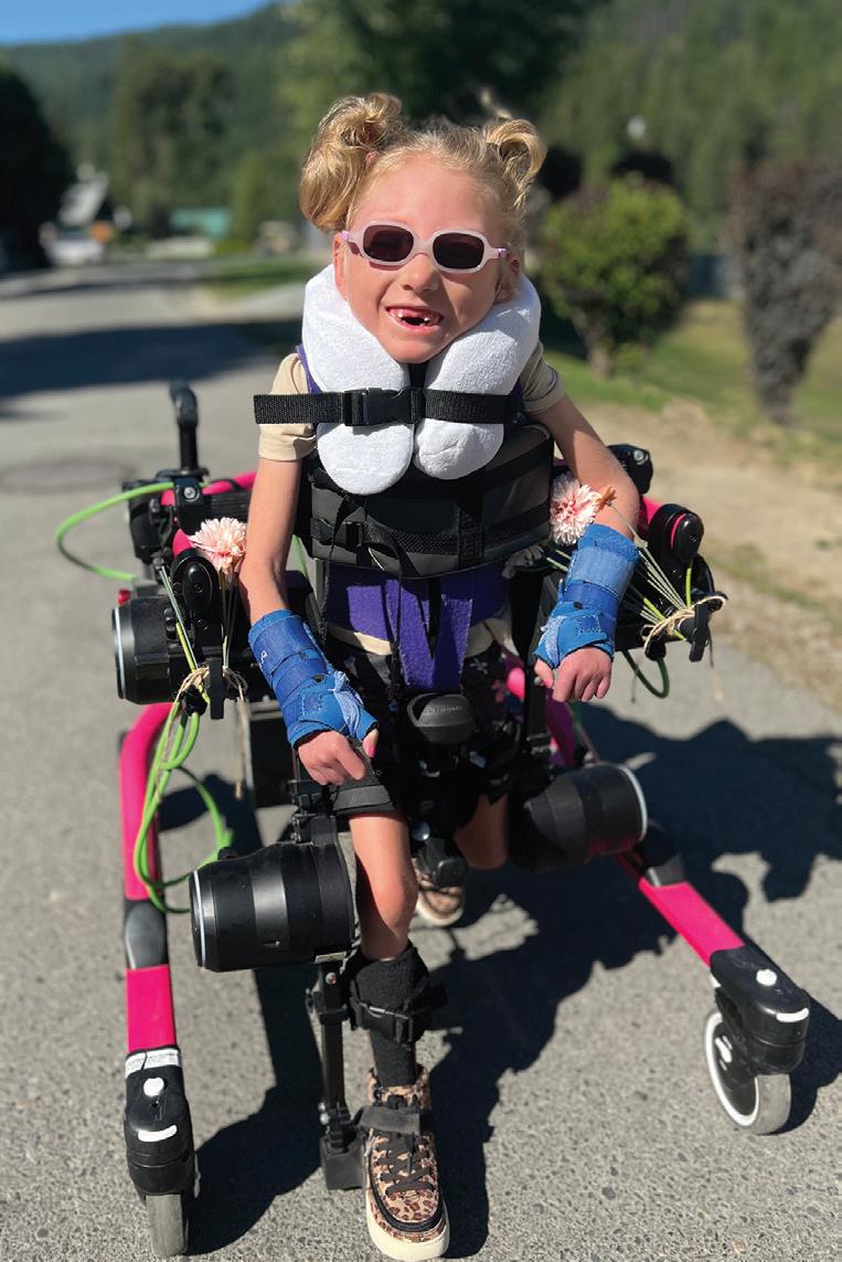 Claire is also treading new ground, quite literally, with other innovative technology called Trexo, a robotic device that is part of nation-leading research at the hospital. Her Trexo device has allowed her to experience walking, including around the mall with friends and down the aisle as a flower girl. Last year she took her 300,000th step at school.