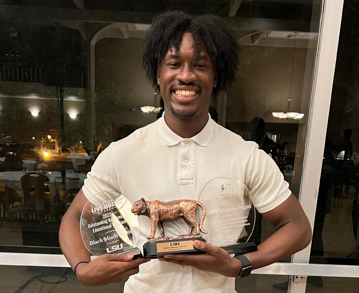 Alongside his academics, Jonathan participated in several campus organizations. He led the executive board of the Black Student Union, helping it grow from 40 members to more than 750 during his tenure. As the African-American Cultural Center’s lead student worker, a student government representative, and a participant in multiple student presidential campaigns, he worked to create a more welcoming environment for Black students on LSU’s campus. These experiences allowed Jonathan to hone his communication and leadership skills while also utilizing marketing, video, and editing expertise gained in his college courses.