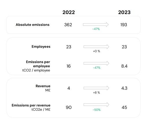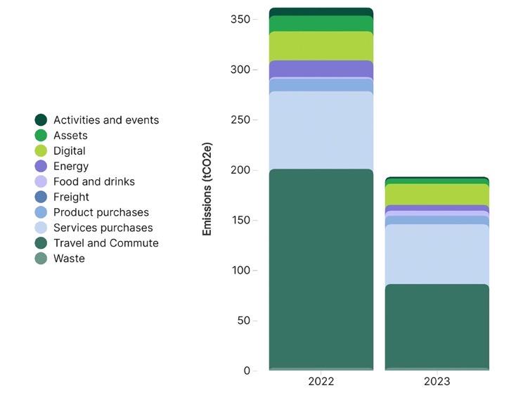 From our baseline in 2022 we reduced scope 1 emissions by 95% through improvements to our air conditioning and scope 2 emissions were down 62%. And whilst the Scope 3 emissions we were able to measure were reduced, we remain committed to go further with our combined strategy for reducing and offsetting.