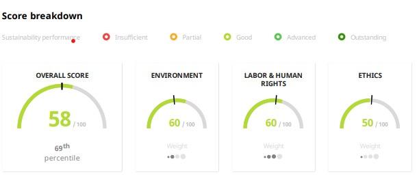 To be eligible for a medal, a company must achieve a minimum score of 30 in each of the four themes: Environment, Ethics, Labour and human rights, Sustainable procurement.