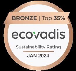 EcoVadis medals are awarded to the top 35% of companies assessed by EcoVadis based on the percentile rank of a company, which is calculated at the time of scorecard publication. It compares a company’s performance with all rated companies in our database over the previous 12 months. The percentile rank is calculated across all companies in all industries, not per industry.