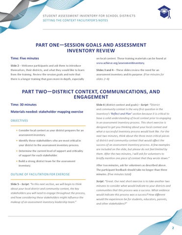 STUDENT ASSESSMENT INVENTORY FOR SCHOOL DISTRICTS SETTING THE CONTEXT FACILITATOR’S NOTES