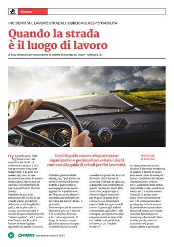 considerare questo tra i fattori di rischio che il datore di lavoro ha l’obbligo di valutare, si riscontra una sottostima di questo rischio per molti altri lavoratori, seppure questi ultimi svolgano mansioni per le quali la guida di un veicolo sia un importante aspetto della loro giornata di lavoro. Si pensi agli addetti commerciali, agli addetti alle consegne, ai rappresentanti o semplicemente ai lavoratori in trasferta o ai pendolari; in breve, ai cd. “mobile workers”.