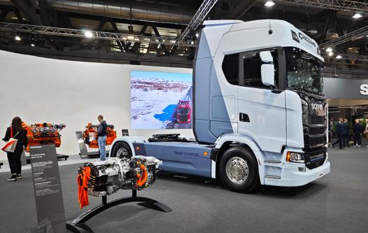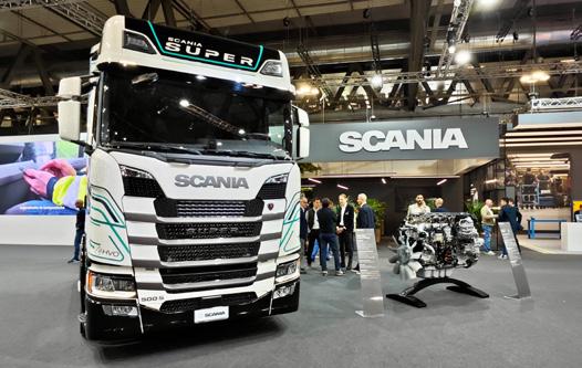 Scania. Due edizioni speciali (un V8 “Fire Edition” con nuova interfaccia digitale per l’autista Smart Dash, personalizzato dal leggendario “Svempa” Bergendhal e dal suo chief designer Jan Richter, e un V8 da 660 CV dedicato a celebrare i 50 anni di attività Scania in Italia) hanno dato lustro all’ampio schieramento proposto dalla casa svedese, che ha presentato le sue numerose soluzioni per una progressiva decarbonizzazione del settore dei trasporti: dai veicoli endotermici ad alta efficienza termica, con ridotte emissioni di CO2 e compatibili con l’HVO, all’elettrico.