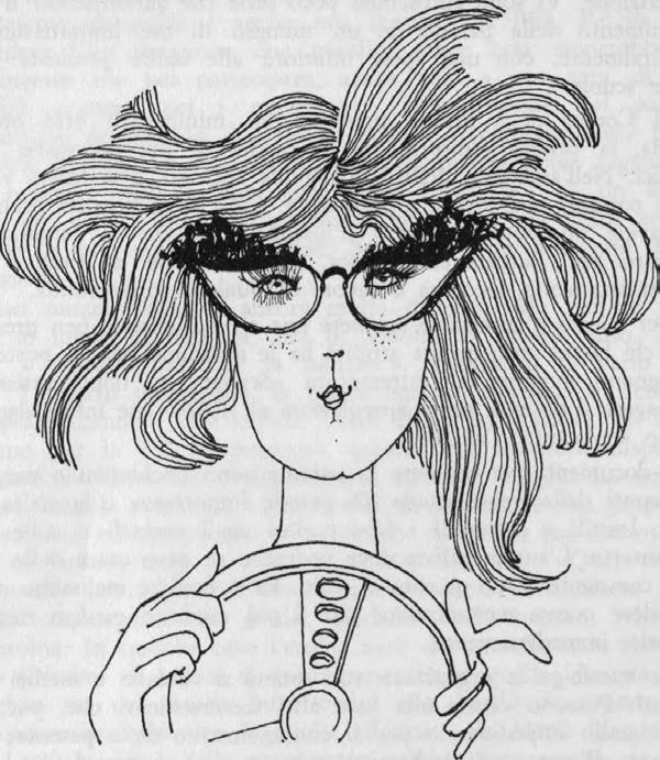 dall’autore, degli studi all’epoca condotti sul comportamento delle donne al volante (“In sostanza, dicono i vigili urbani, le donne guidano con prudenza, non sono quasi mai protagoniste di incidenti tragici, ma guidano distrattamente e qualche volta - sono sempre i vigili a dirlo - vanno cosi adagio che costituiscono un ostacolo alla circolazione”) o la preoccupata evidenziazione delle “défaillance” tutte femminili (“La conoscenza del mezzo è di grande utilità nei giorni in cui i riflessi sono un po’ appannati. Questo fenomeno, secondo alcuni studiosi, è molto frequente nelle donne in determinati periodi mensili”).