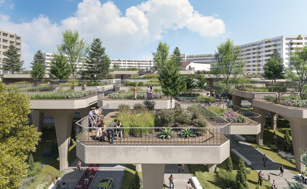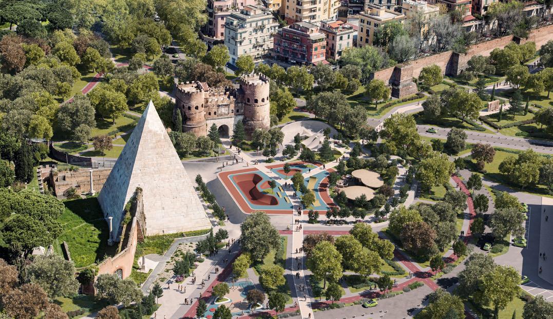 Qui sopra e in apertura dell’articolo il rendering della città di Roma, più verde e senza traffico.