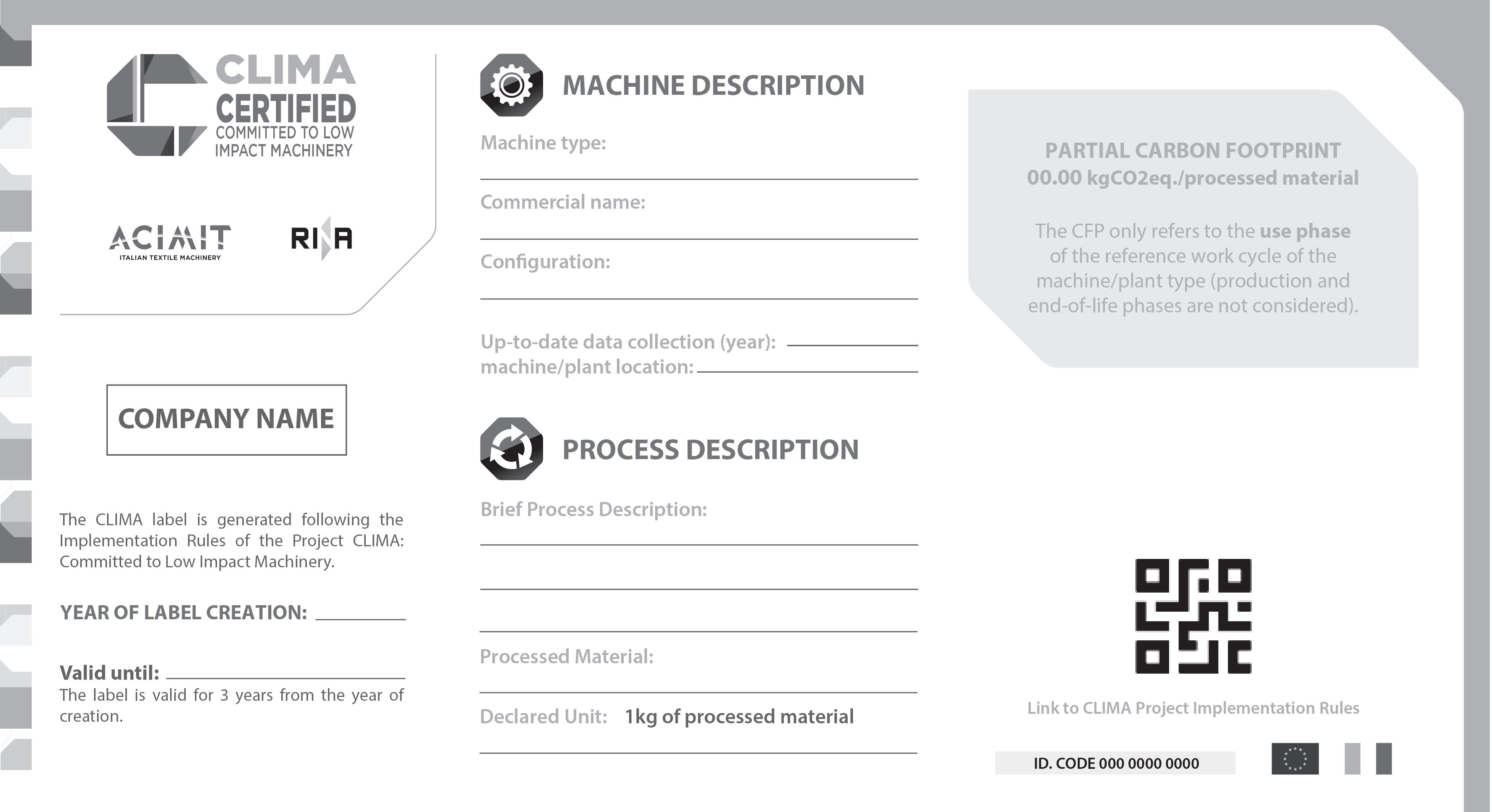 Developed by ACIMIT in collaboration with the accredited certification body RINA, CLIMA represents the joint effort of the Italian textile machinery manufacturers at reducing the environmental impact of the technologies they design, produce and commerce.