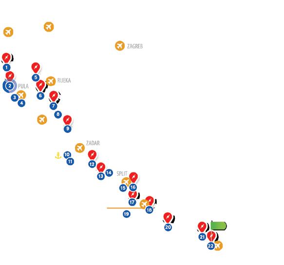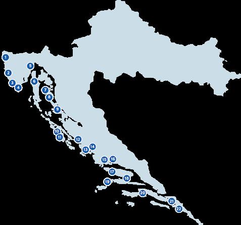 1. ACI Umag 2. ACI Rovinj 3. ACI Pula 4. ACI Pomer 5. ACI Opatija 6. ACI Cres 7. ACI Supetarska Draga 8. ACI Rab 9. ACI Šimuni 10. ACI Žut + anchorage Žut 11. ACI Piškera 12. ACI Jezera 13. ACI Vodice 14. ACI Skradin 15. ACI Trogirwww.aci-marinas.com