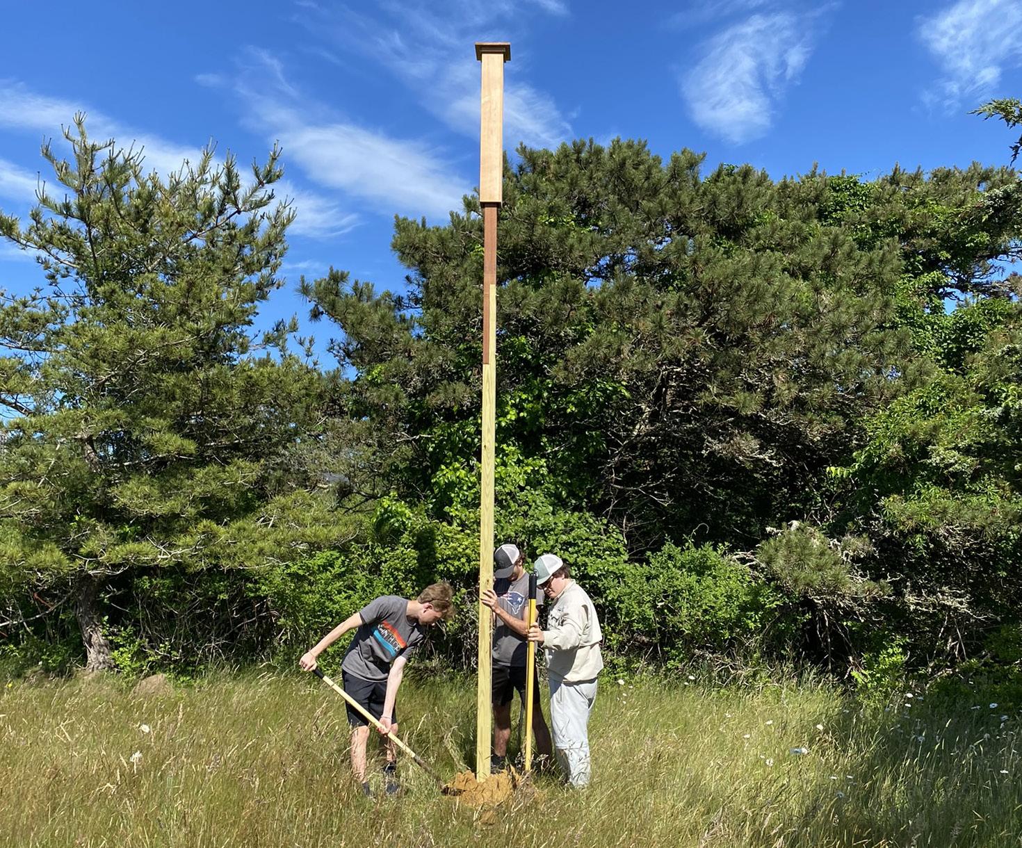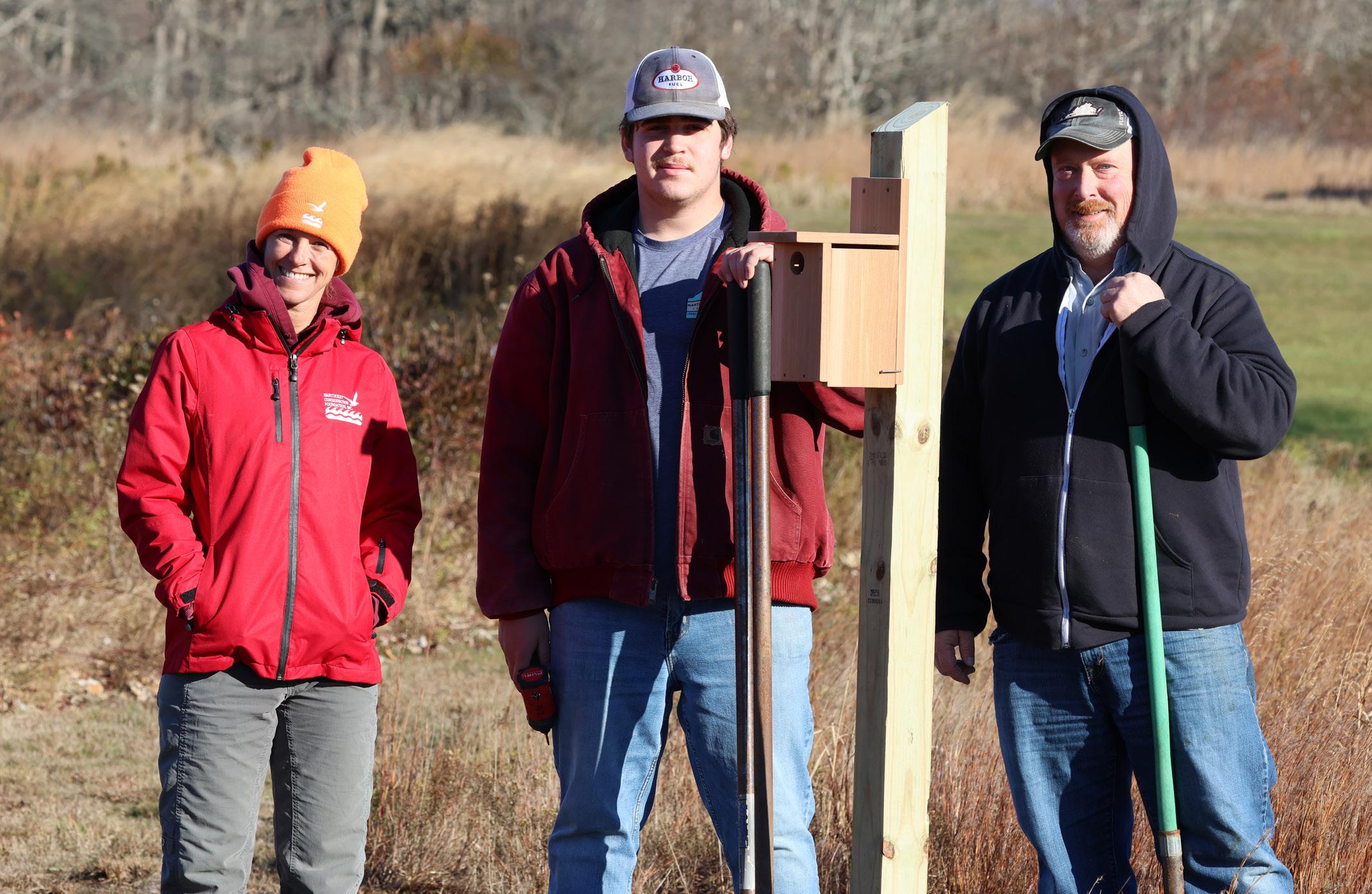Across NCF properties, our wildlife ecology and land management teams have been working together to create structures that provide habitats for species in need of alternative roosting and nesting sites. These species play vital roles in the ecosystem: controlling insect populations, pollinating plants, and contributing to the vibrant wildlife you encounter across the island. By providing nesting habitats in carefully chosen locations and monitoring their use over time, we are pairing hands-on conservation with long-term stewardship and support for biodiversity while learning how best to protect these important species on Nantucket into the future.