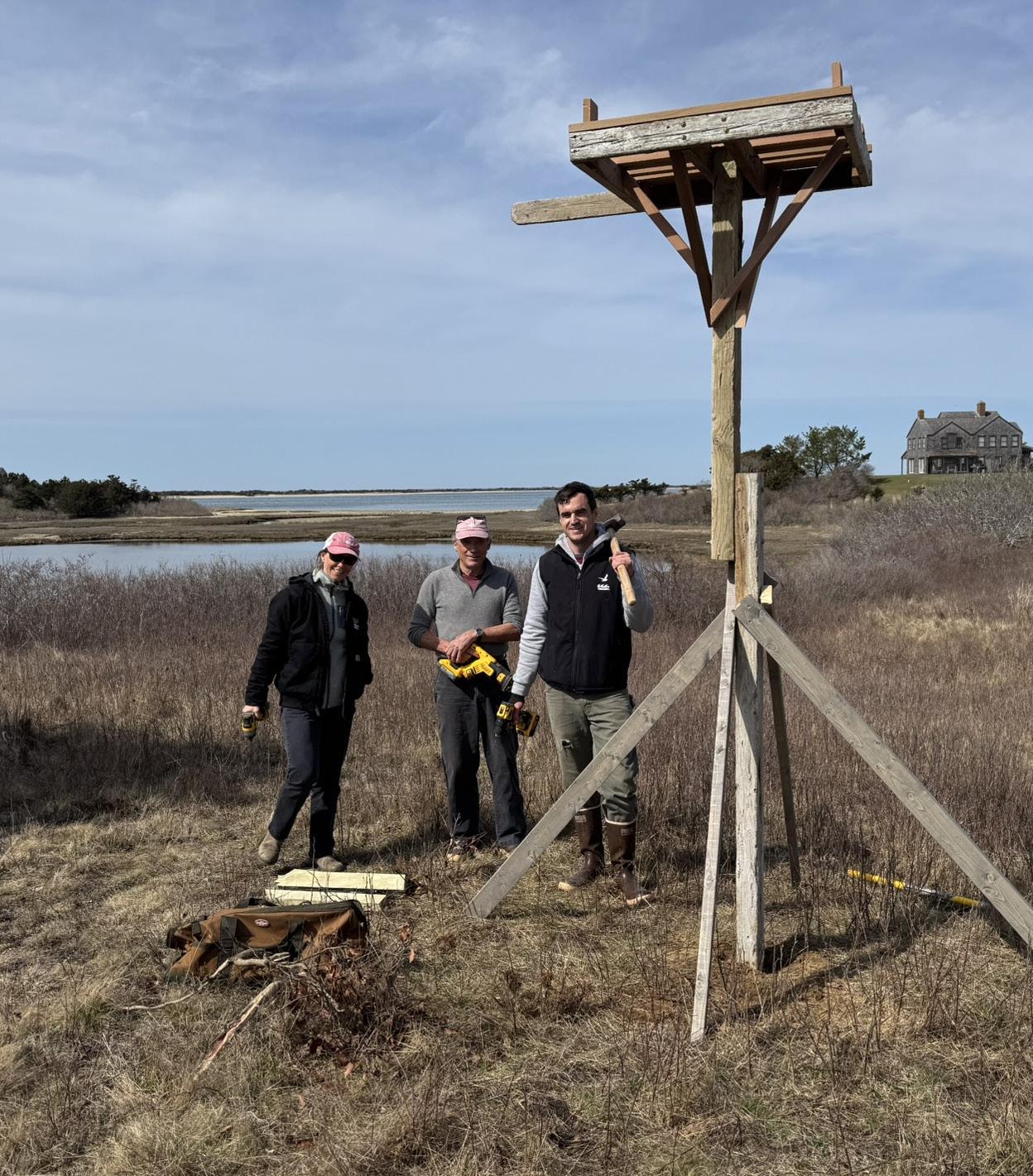 We install and maintain osprey poles across Nantucket to provide dependable places for these charismatic migratory birds to nest, some of which have been in use for decades. Just as many people return to the island each spring, so do the ospreys—their arrival a welcome sign of the changing seasons and summer ahead. Most recently, we added a new pole that encouraged an osprey to swap a neighbor’s chimney for a purpose-built nesting platform nearby!
