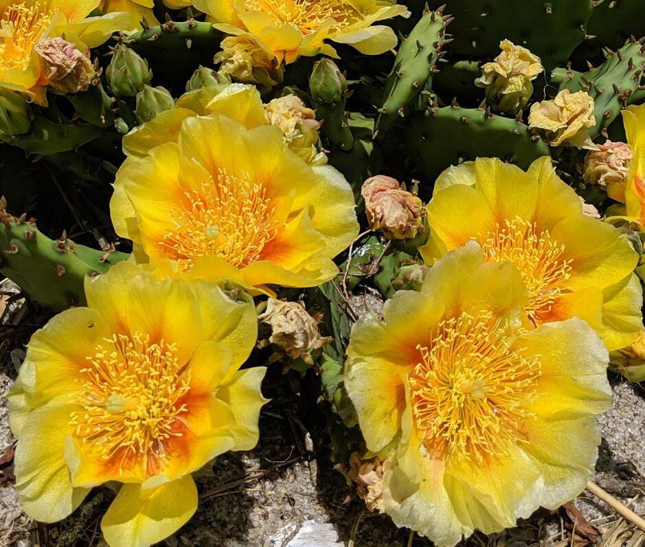 You may not associate them with Nantucket, but we do have a native cactus! This species inhabits sandy dune environments in remote parts of the island. Recently the NCF Botany Team surveyed across the prickly pear’s island domain, reporting to the MA State Botanist; as a result, our Opuntia population has been documented as a different species from most populations in New England, and now has MA Endangered status. 1