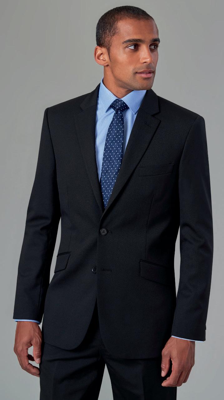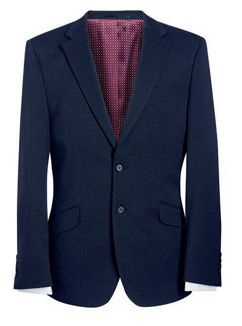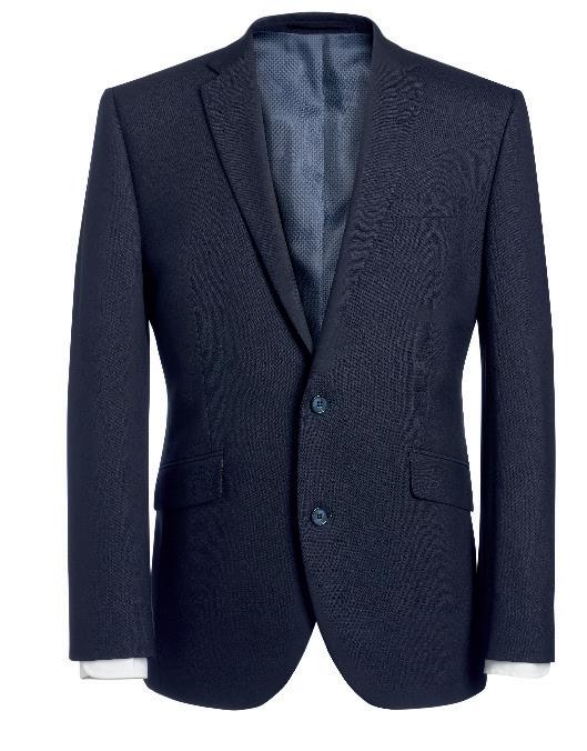 2 button front, 2 jetted pockets, slanted welt chest pocket,
