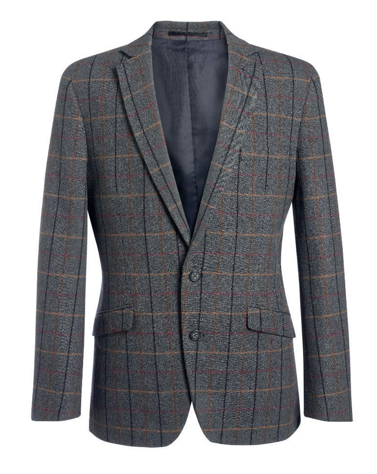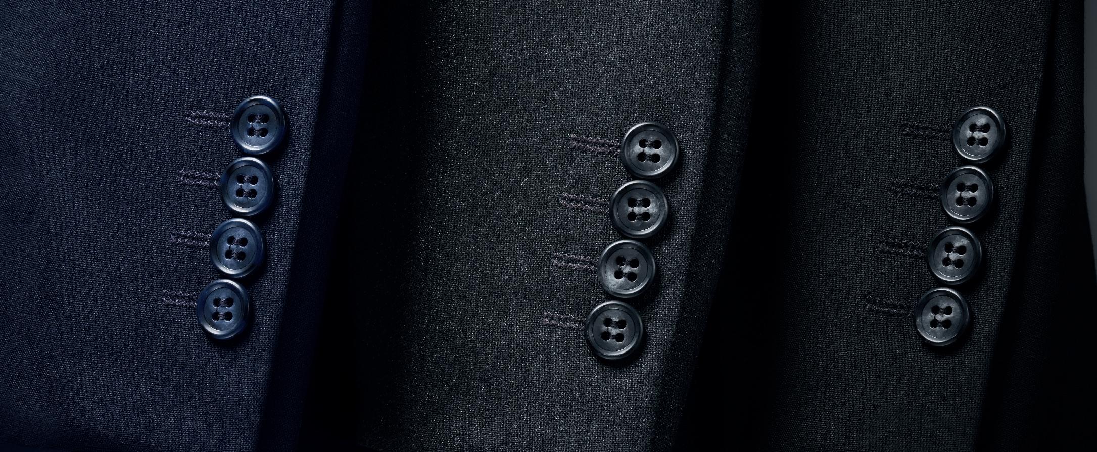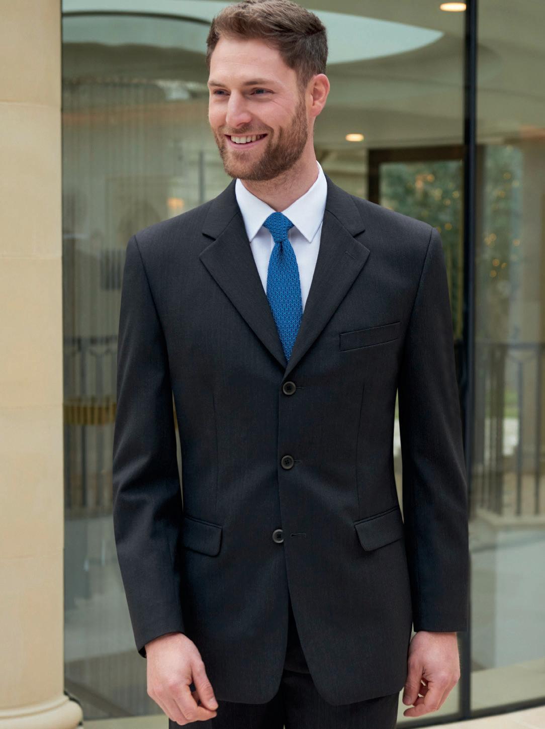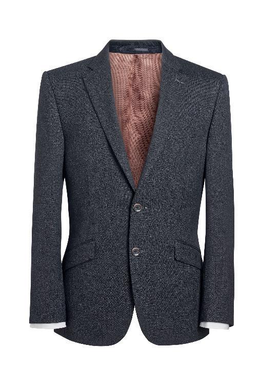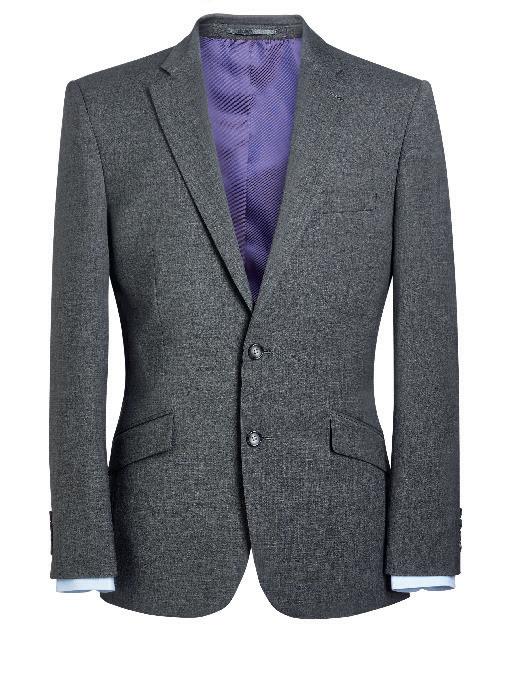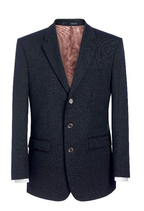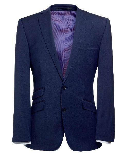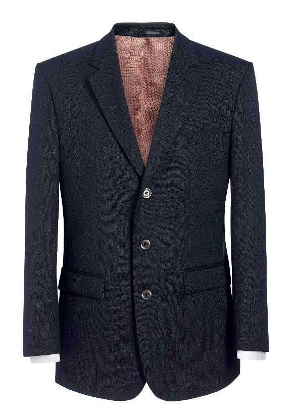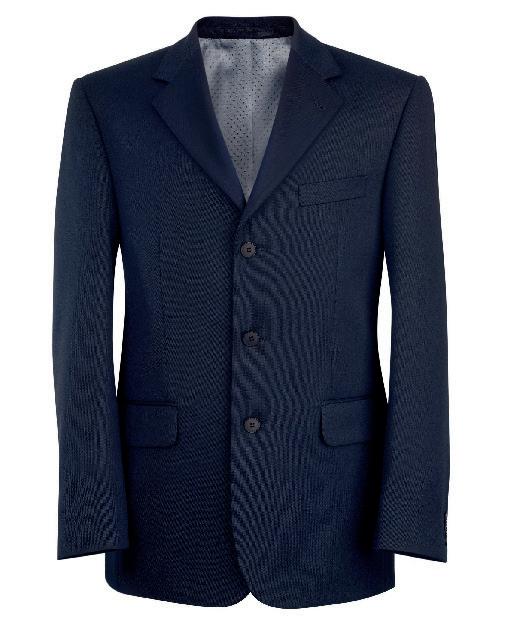 3 button front, 2 jetted pockets, slanted welt chest pocket, 3 internal jetted pockets, centre vent.