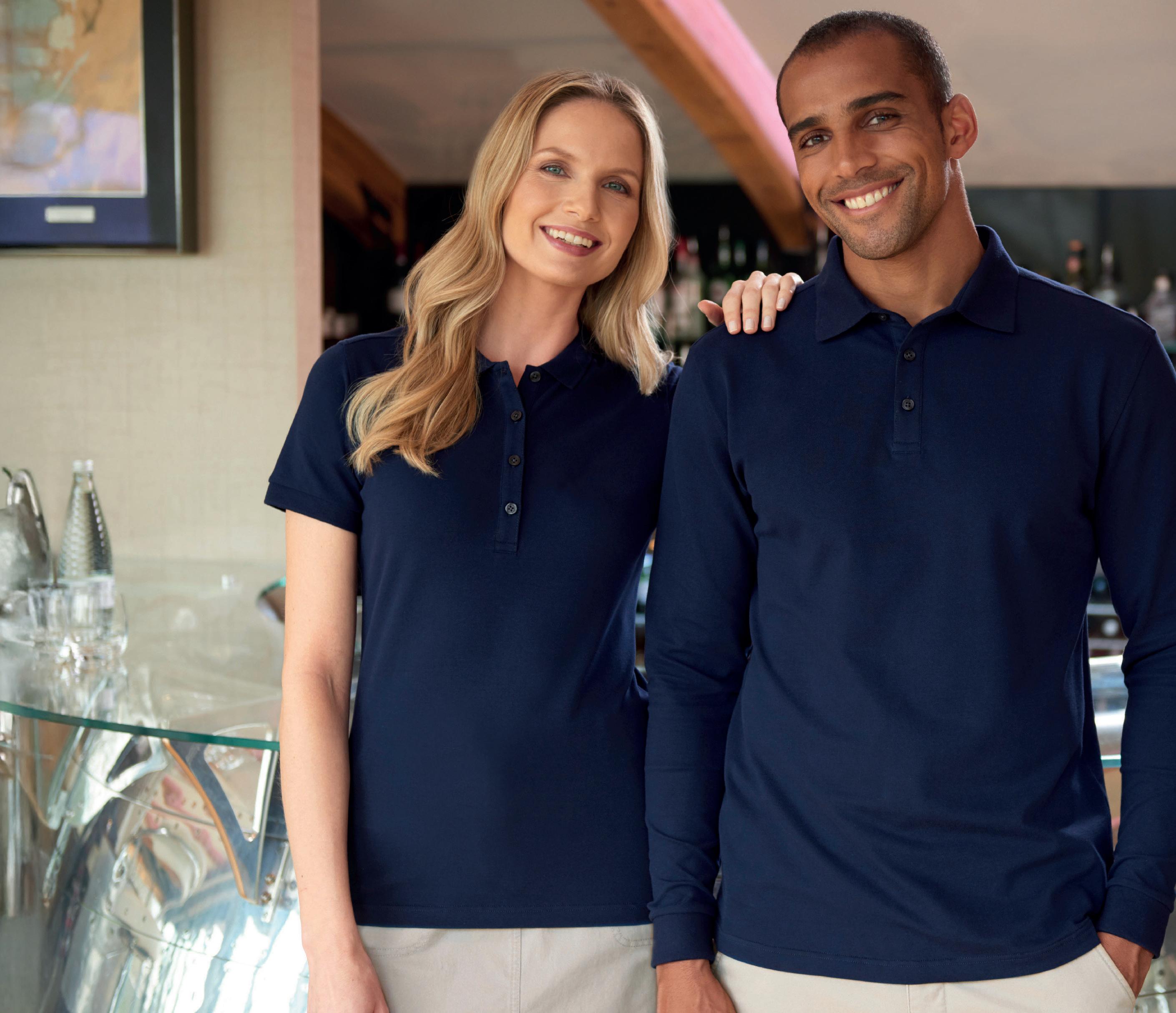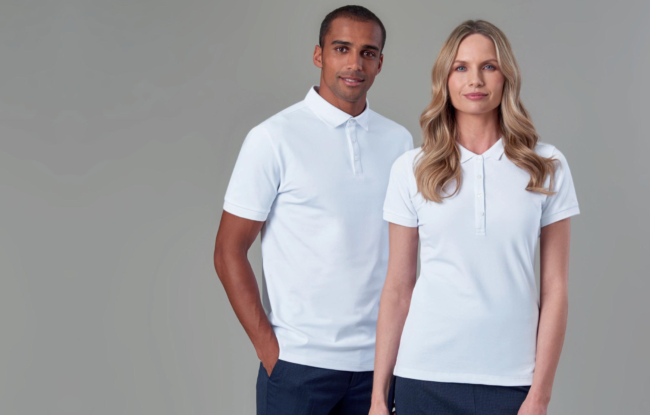 A casual hero in the corporate marketplace, the premium cotton polo is a go-to piece for confident customer-facing teams.