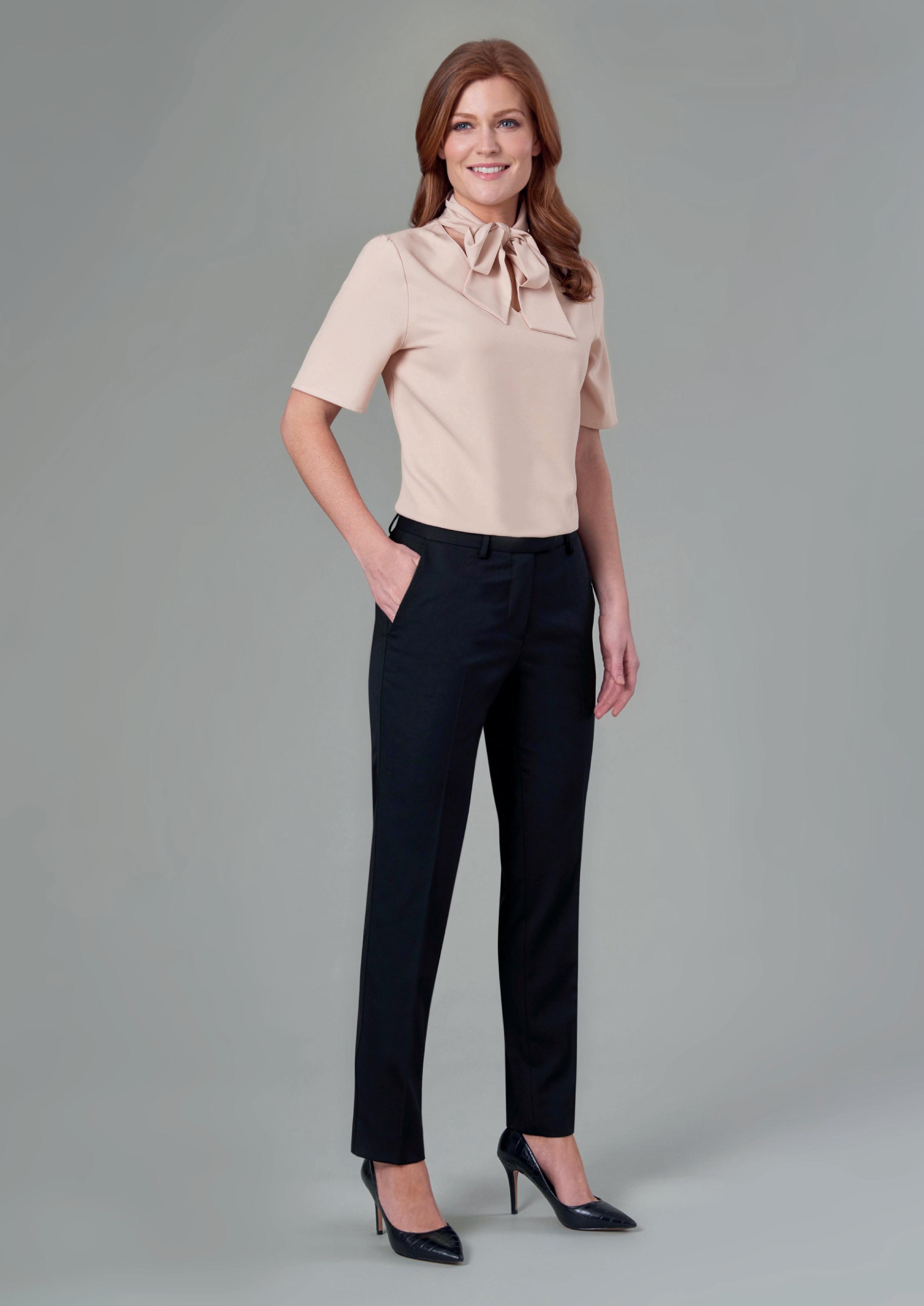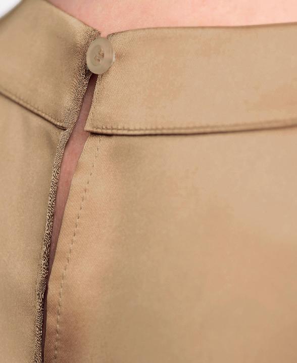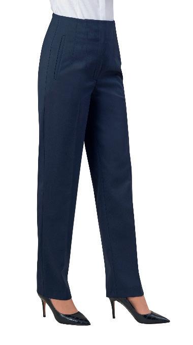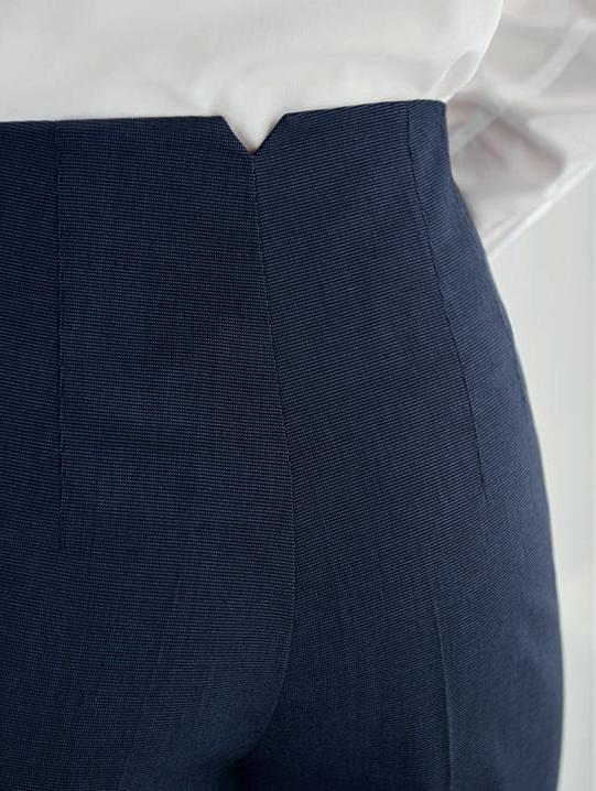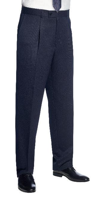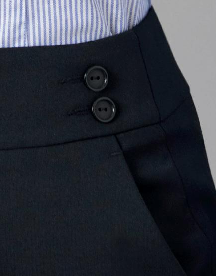 Single pleat with waistease function, 2 side pockets, 1 rear pocket.
