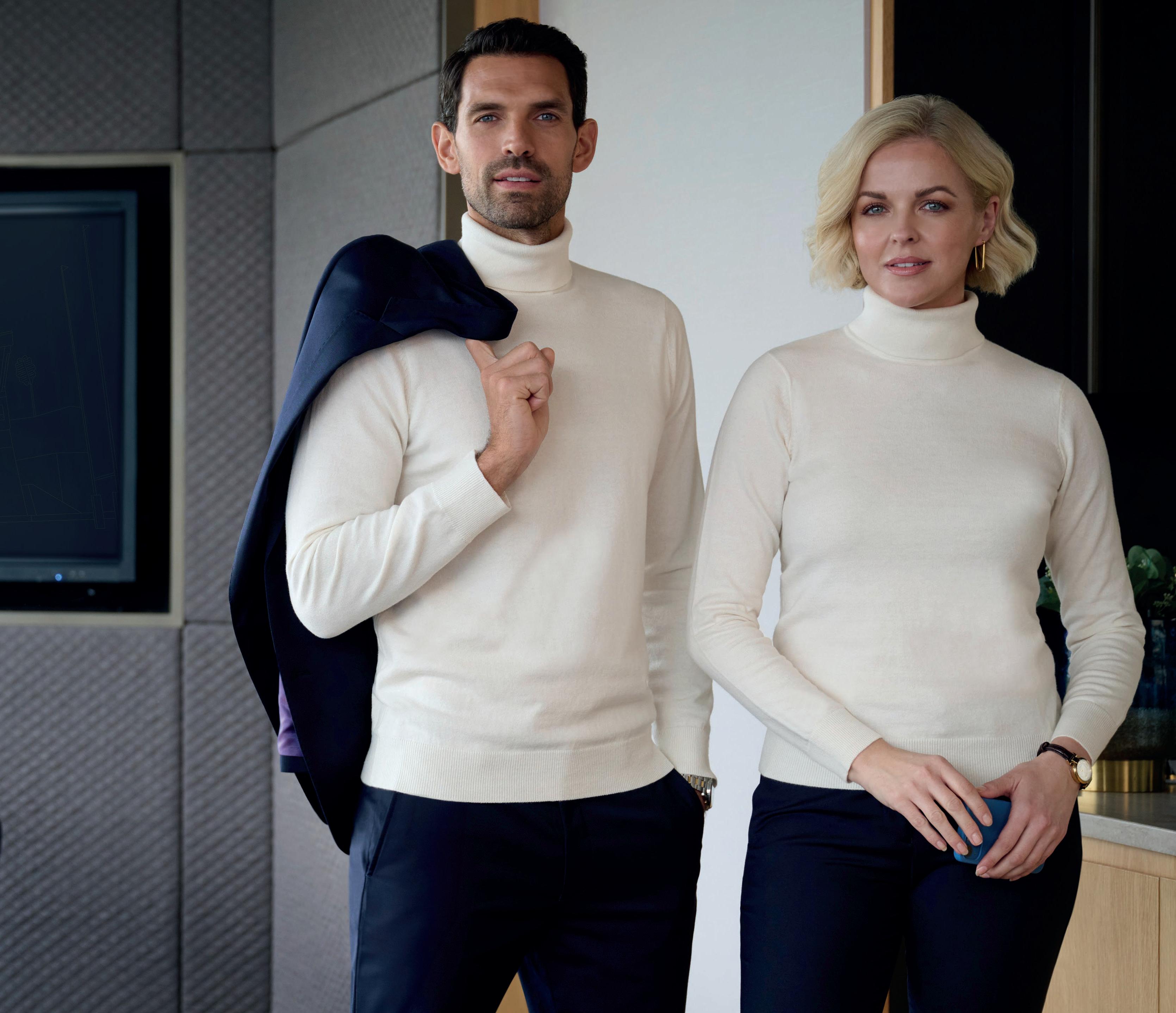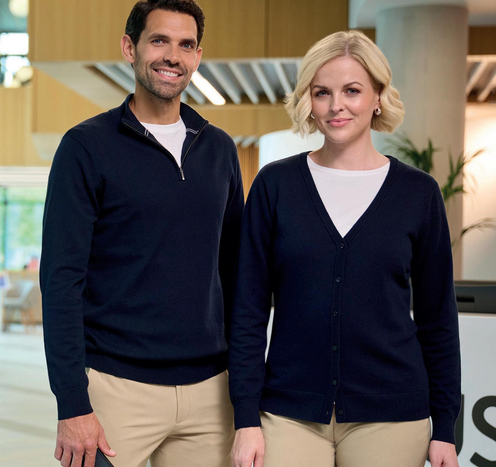 Let the knitwear do the talking with a layer of luxury. Whether Premium Knitwear styles are worn alone or as textured layers, these stunning pieces give close-knit teams the flexibility to choose combinations that work for them. The perfect blend of merino wool and cotton ensures a continuously fresh wear with expanded lifespan.