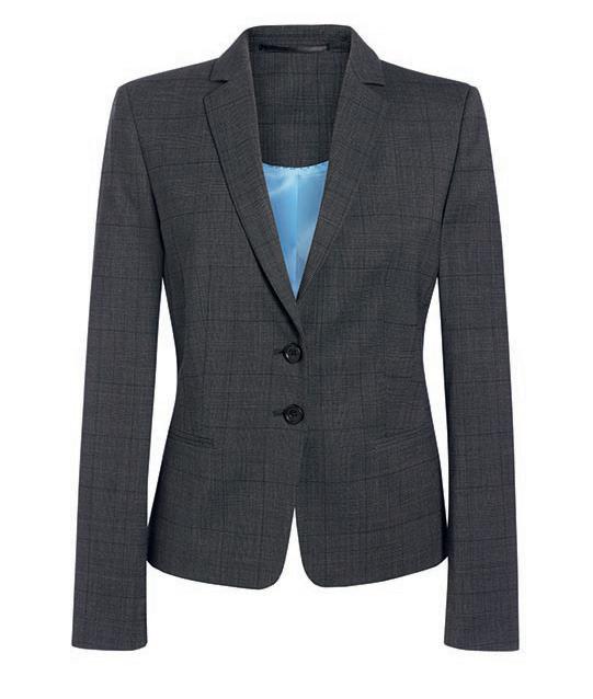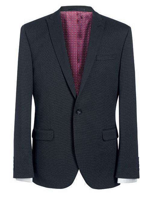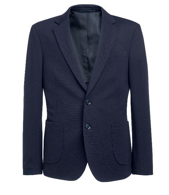2 button front, 2 jetted pockets, small internal jetted pocket, centre vent.
