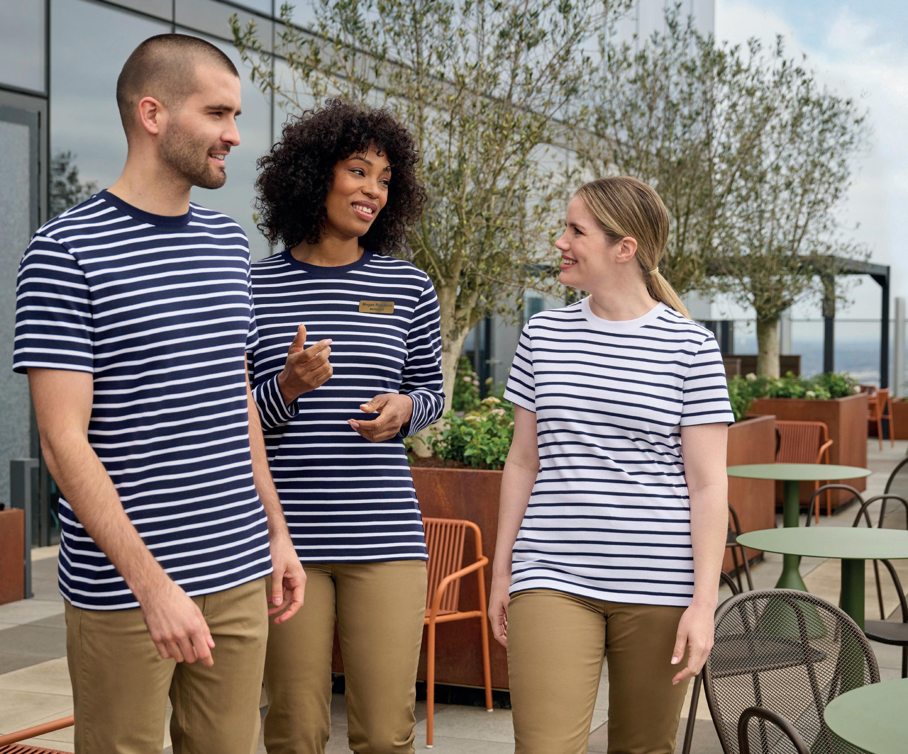 We’re excited to launch a range of men’s and women’s breton tops! Adding a fresh sense of dynamism with a timeless striped design and exceptional craftsmanship, these styles are an ideal choice for fast-paced hospitality establishments looking to give a nod to nautical heritage.