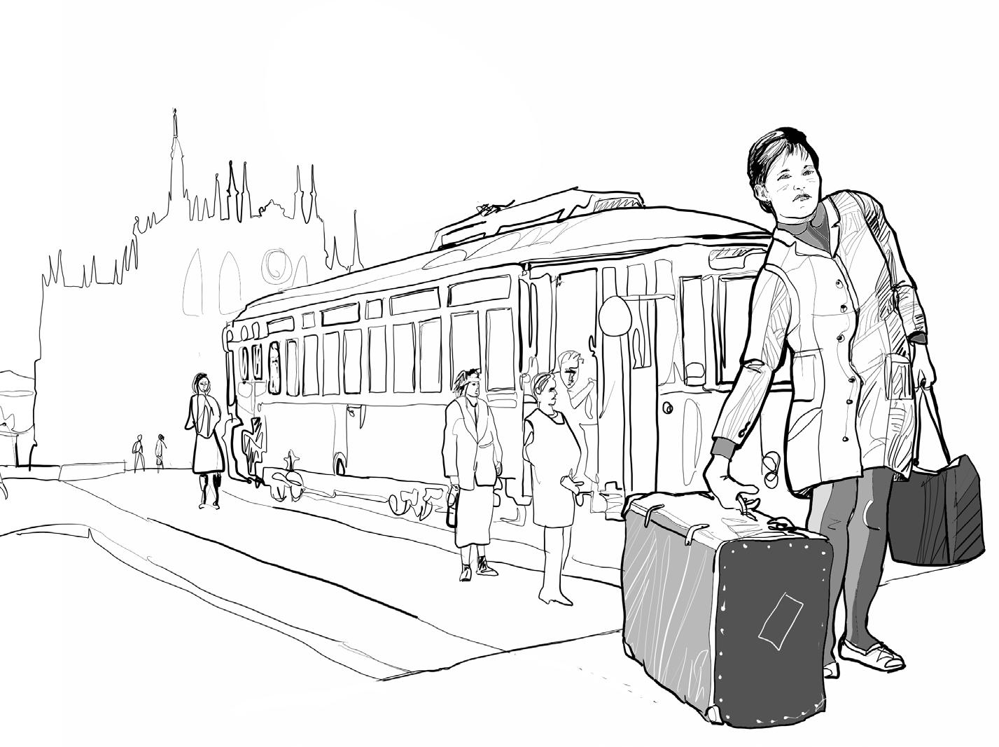 Era estate quando sono partita. Forse la Signora è venuta a prendermi a casa o forse mi hanno accompagnata le suore in treno, non mi ricordo. La Signora non aveva fgli, non aveva nessuno, solo un cugino che veniva ogni tanto a trovarla. Aveva però molti quattrini, perché suo marito era un Commendatore che comandava una fabbrica o una industria. Ma era poco che era morto d’infarto a 56 anni. E la Signora era pazza. Aveva anche lei 56 anni ma ne dimostrava ottanta, era magrissima, aveva delle gambe magre così. Io le facevo tutto: la lavavo, la spogliavo, la vestivo, le facevo da mangiare, facevo la spesa, la portavo a passeggio. Le davo il braccio quando si camminava. Erano gli anni che a Torino venivano su tutti quei meridionali di vent’anni, giovani come me. Trovavano lavoro alla FIAT. Questi operai, in giro, quando