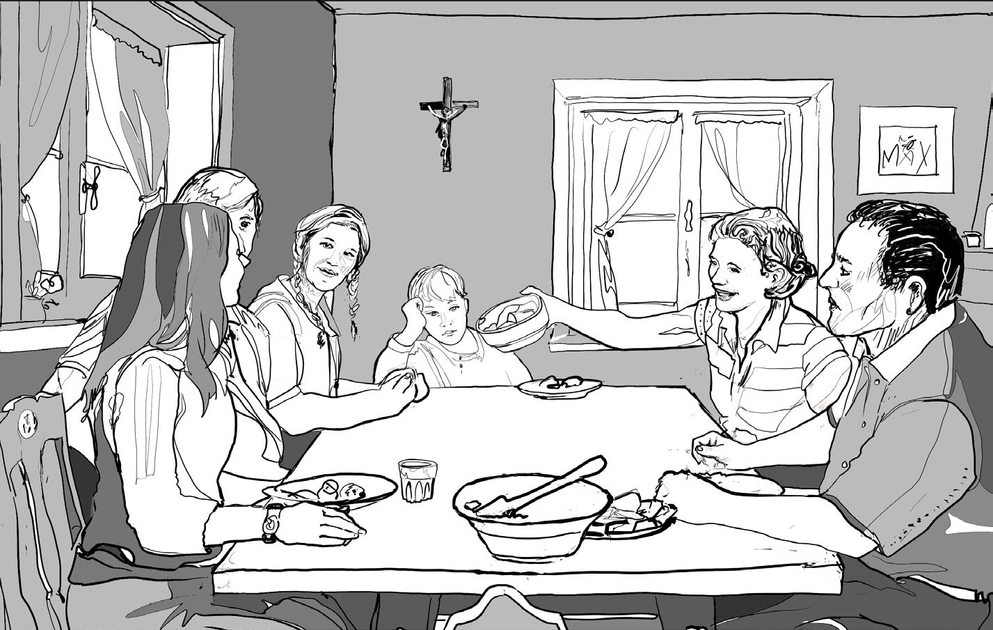 Sono andata a Losanna. Lì con me c’era una persona che mi aiutava a servire. Perché non arrivavo a tutto: bambini e cucinare. I bambini non volevano andare all’asilo insieme. C’era quindi sta ragazza, era tedesca, e i bambini non la capivano e non volevano andare con lei. I soldi che guadagnavo li mandavo a casa tramite il prete di Losanna. Guadagnavo una miseria. Li mandavo quasi tutti, mi tenevo poco poco. Dura dura dura è stata in quegli anni. Nel poco tempo libero si andava a messa alla Casa d’Italia.