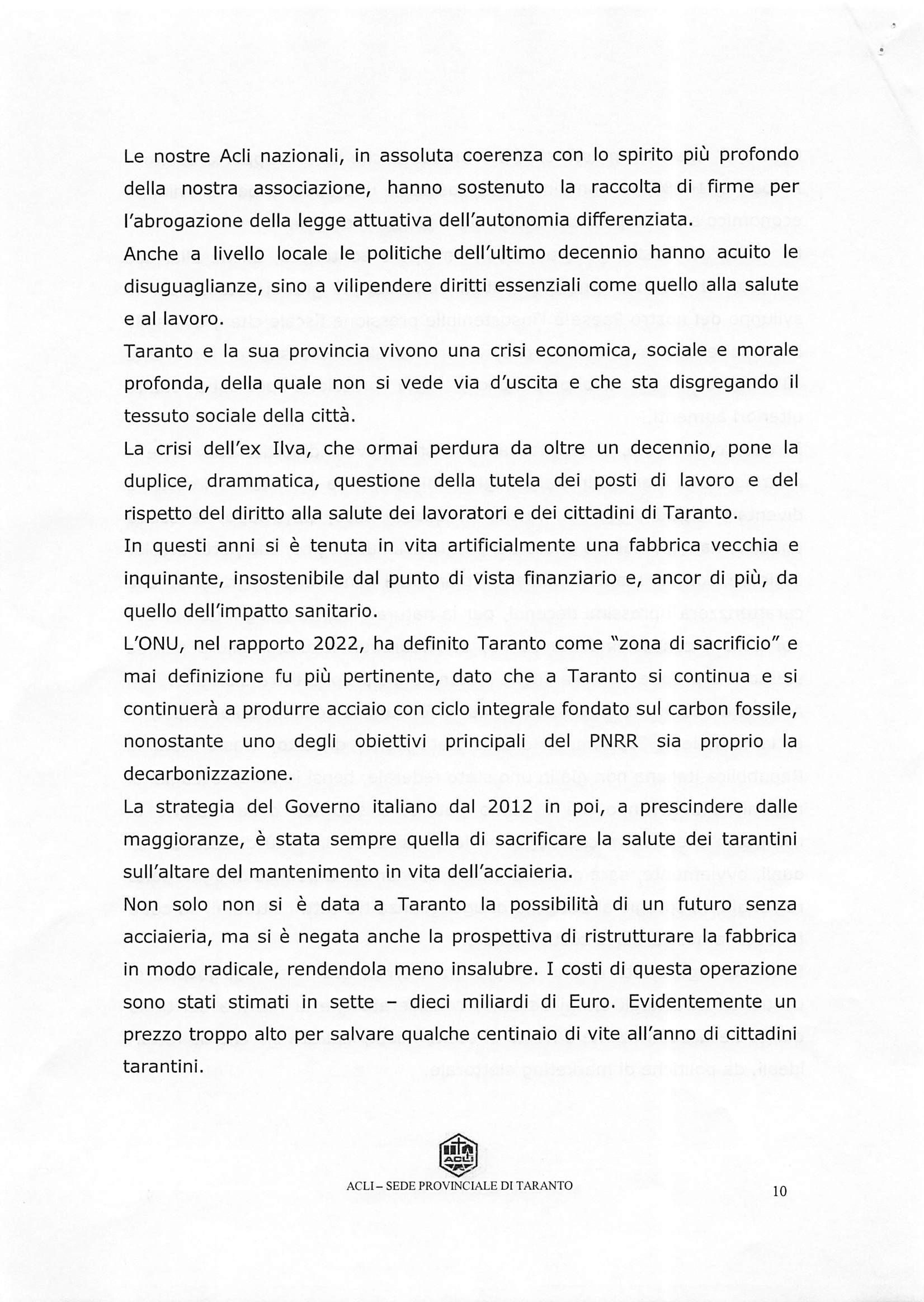 Relazione Taranto by Acli (Associazioni Cristiane Lavoratori Italiani) aps - Issuu