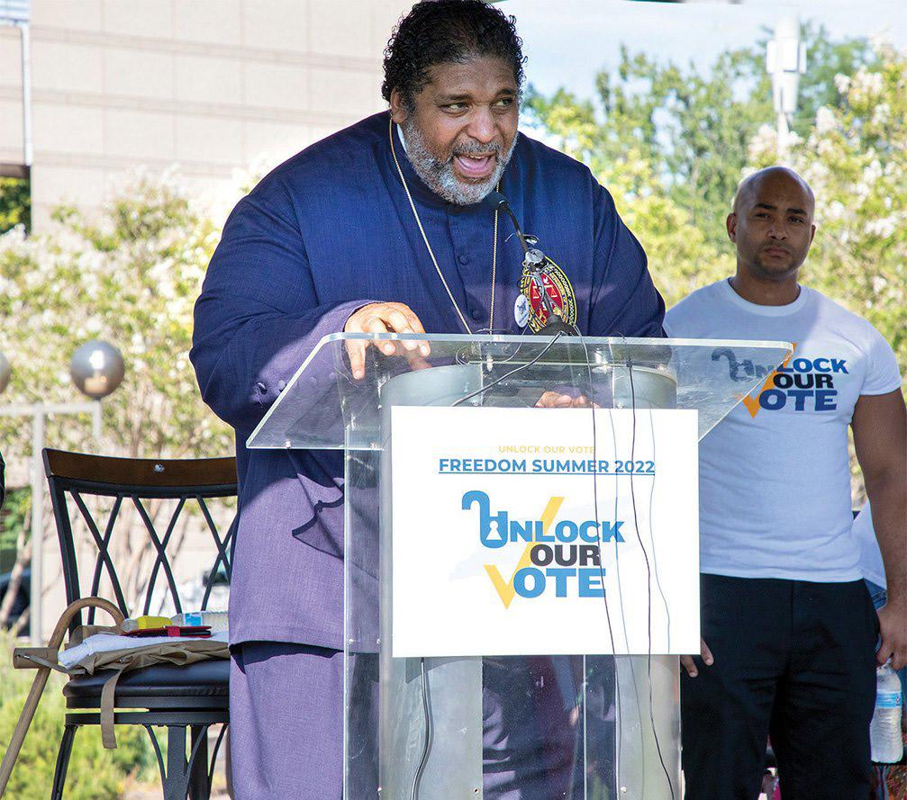 Rev. Dr. William Barber II speaking at the Unlock Our Vote Freedom Summer Tour