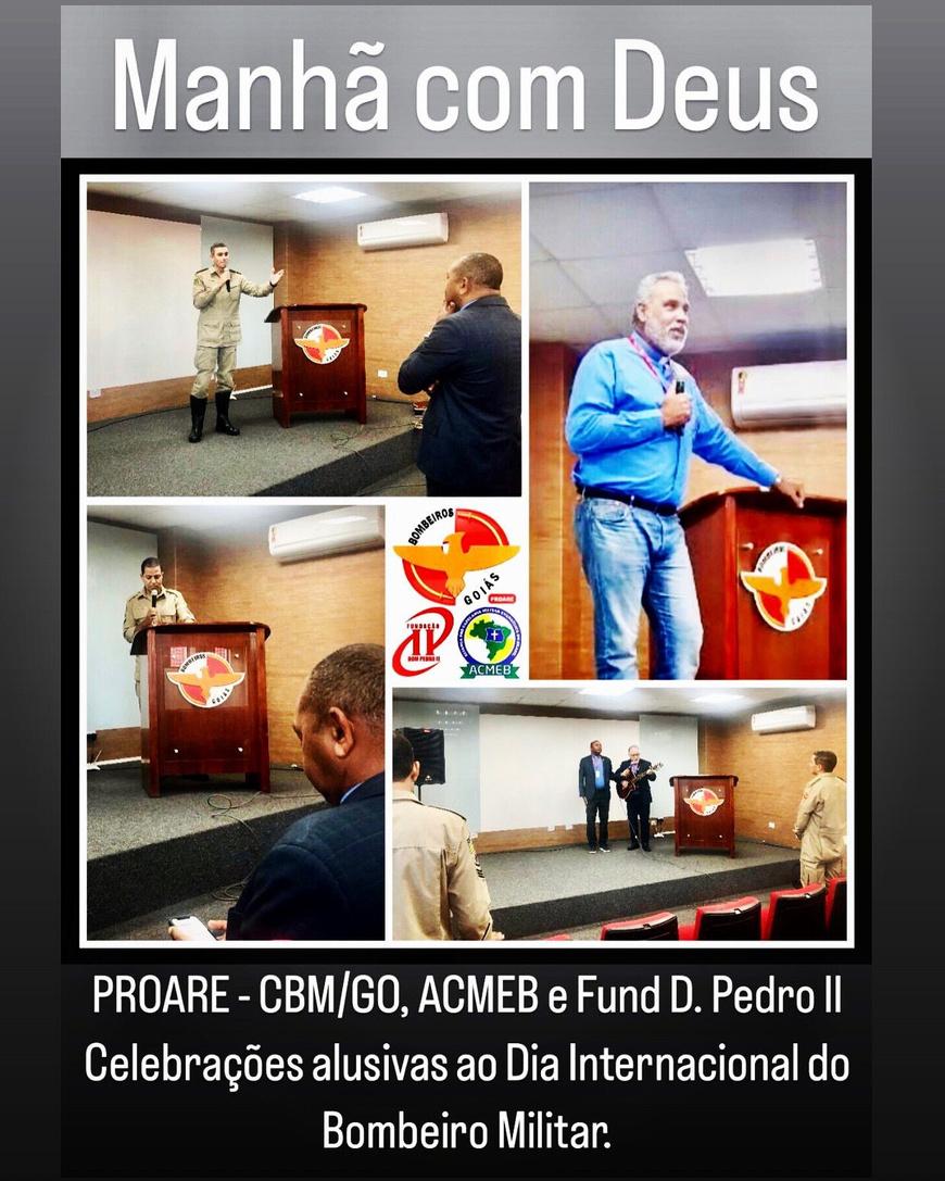 O Conselho de Curadores da Fundação Dom Pedro II, Goiânia – GO, em sua Reunião Extraordinária realizada dia 15 de junho de 2023, aprovou a renovação por mais 36 meses do Termo de Parceria celebrado entre ela, a ACMEB e o Corpo de Bombeiros Militar do Estado de Goiás. É por meio dessa parceria que a ACMEB tem prestado assistência religiosa e espiritual no CBMGO desde 2010. São muitos os benefícios que o PROARE tem proporcionado à Corporação. Tal assistência é prestada por meio de Pastores de diversas denominações, todos voluntários, sob a Coordenação do Pastor Hudson Faria dos Santos.