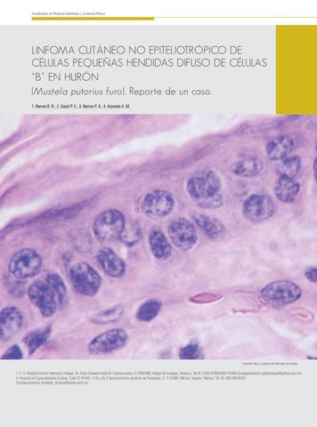 LINFOMA CUTÁNEO NO EPITELIOTRÓPICO DE CÉLULAS PEQUEÑAS HENDIDAS DIFUSO DE CÉLULAS “B” EN HURÓN (Mustela putorius furo). Reporte de un caso. 1. Ramos B. R., 2. Gazol P. E., 3. Ramos P. A., 4. Acevedo A. M.