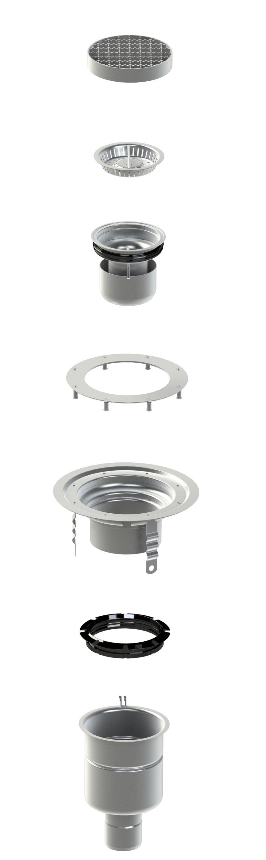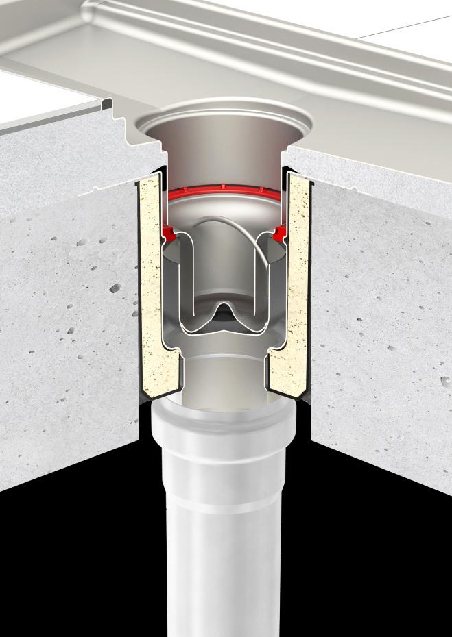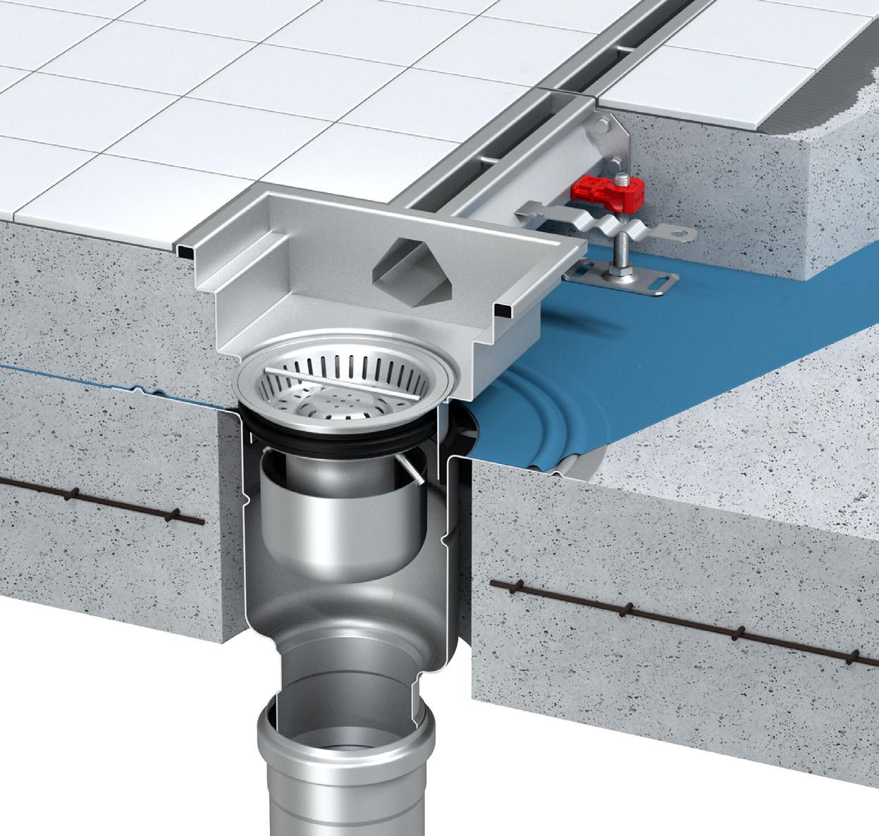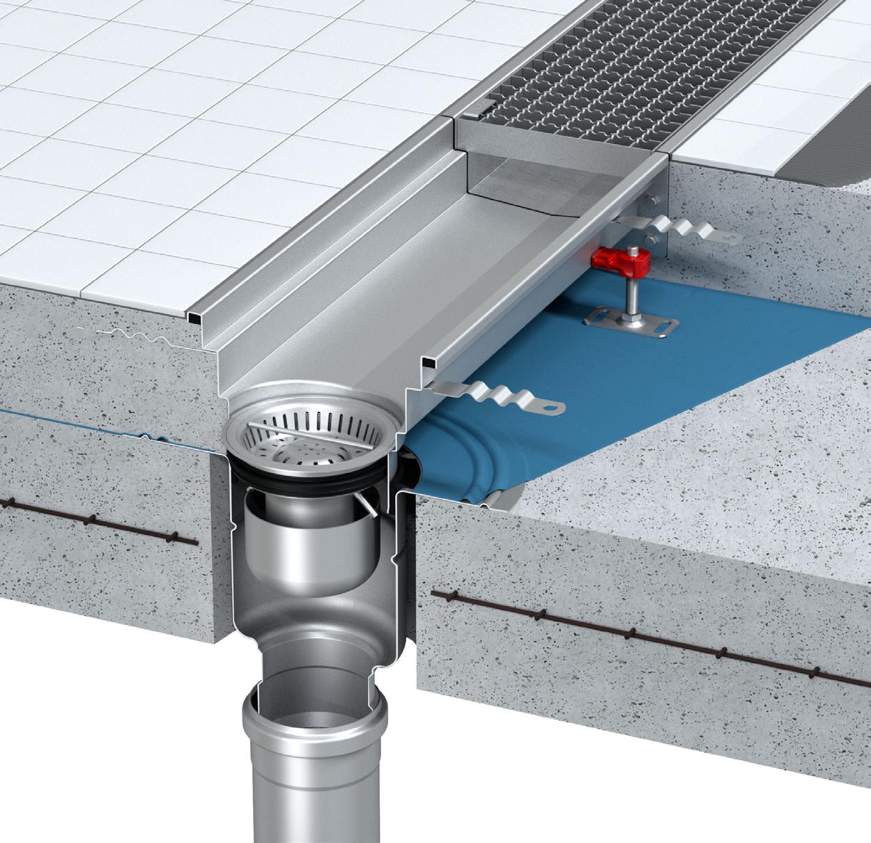 Caniveaux et siphons intérieurs Systèmes de canalisations inox Drainage des toitures et terrasses Couvercles de visite Plinthes pour la protection des murs